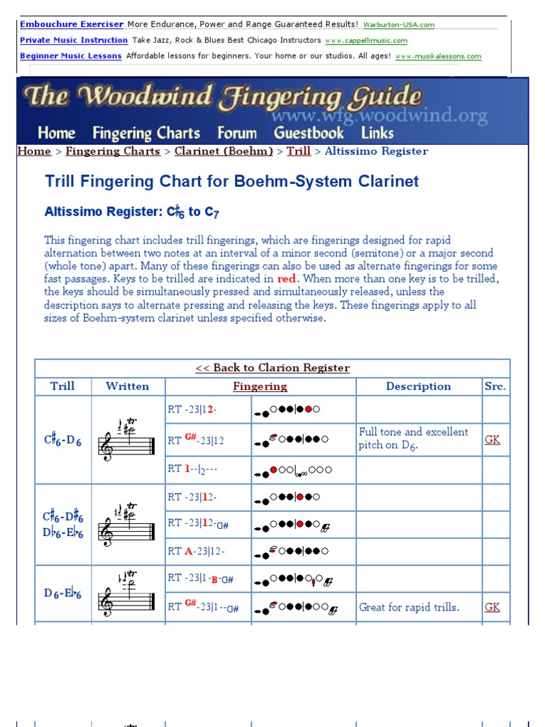 . Checkout Our Selection Of Clarinet Reeds Today. Up to 3 cash back Clarinet Trill Chart - Read online for free. Clarinet Trill Chart T 123E123F E3-F3 T 123F123E E3-F 3 F 3.