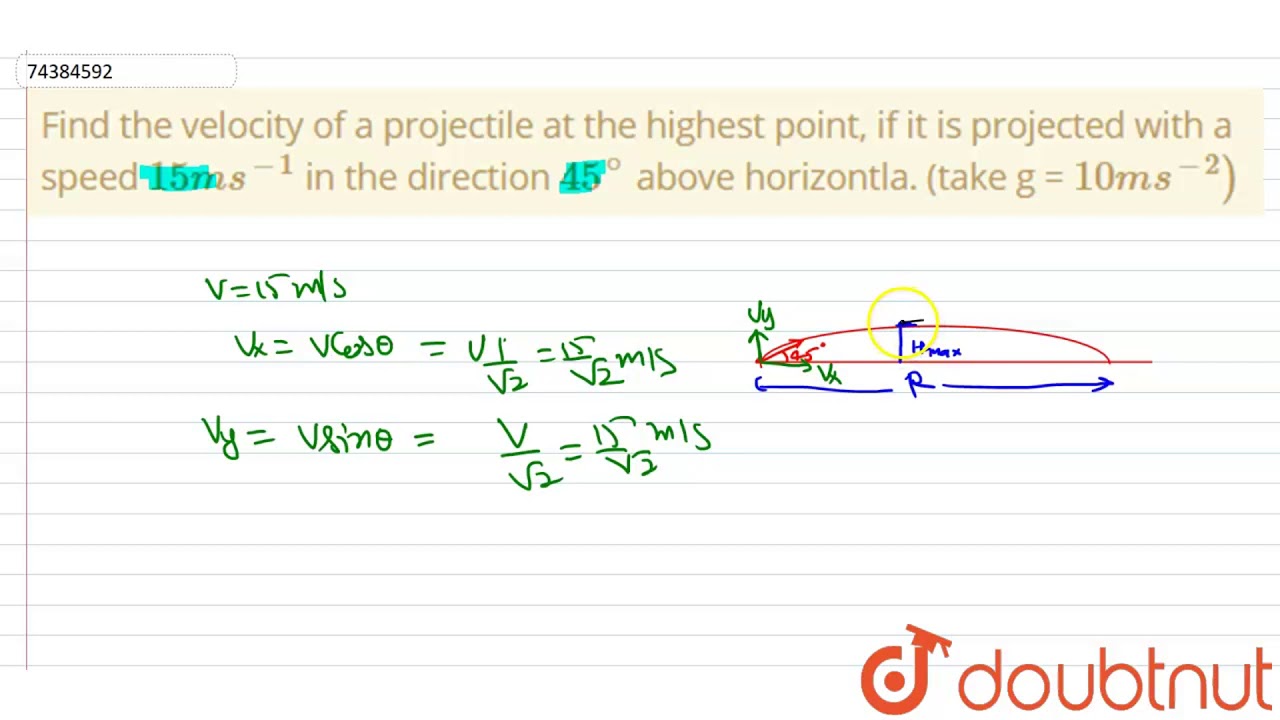 Find The Velocity Of A Projectile At The Highest Point If It Is Projected Youtube